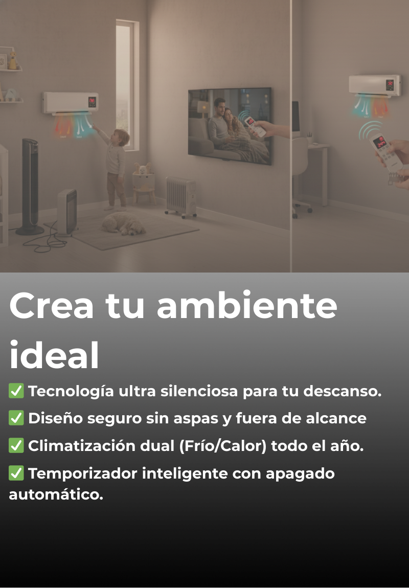 Gracias a su sistema de convección forzada y su diseño de montaje alto, el aire circula de forma más eficiente por toda la estancia. Es ideal para habitaciones de hasta 15-20 m², logrando una temperatura uniforme en pocos minutos, a diferencia de los ventiladores pequeños que solo refrescan si estás justo frente a ellos.